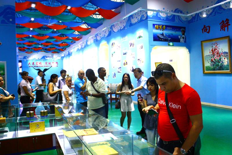 9月14日,來華參加研修班的古巴政府代表團一行20余人,在中聯部、農業部及省市海洋漁業部門領導陪同下考察宇王集團海洋生物產業園。