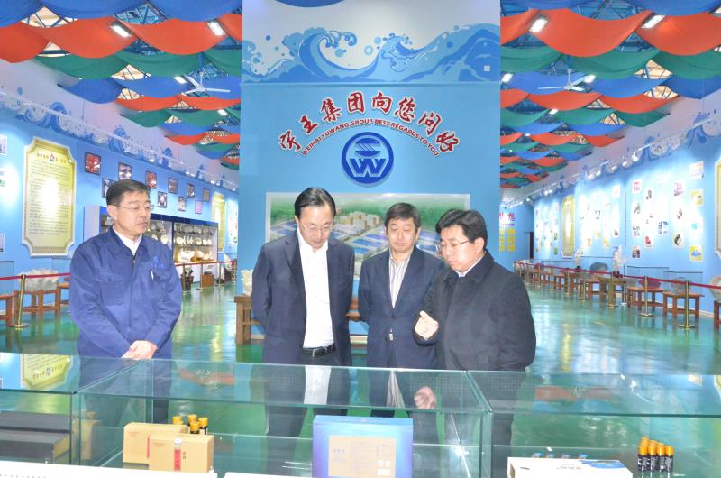 2019年3月1日,威海人大于東海副主任來到宇王集團海洋生物科技產業園區,對海洋生物工程公司進行了實地走訪考察。于主任在宇王集團黨委副書記隋樹武、海洋生物工程公司總經理白義化的陪同下參觀了海洋生物館和海洋生物工程生產車間。對于宇王集團高舉海洋科技發展戰略的大旗,于主任給出了高度的評價,他談到,海洋戰略既是國家戰略,又是未來經濟發展的潛力所在,宇王集團能走在前列,是多年來深耕海洋,向海洋挖潛的成果。希望宇王集團能再接再厲,為國家海洋戰略的成功實施添磚加瓦。
